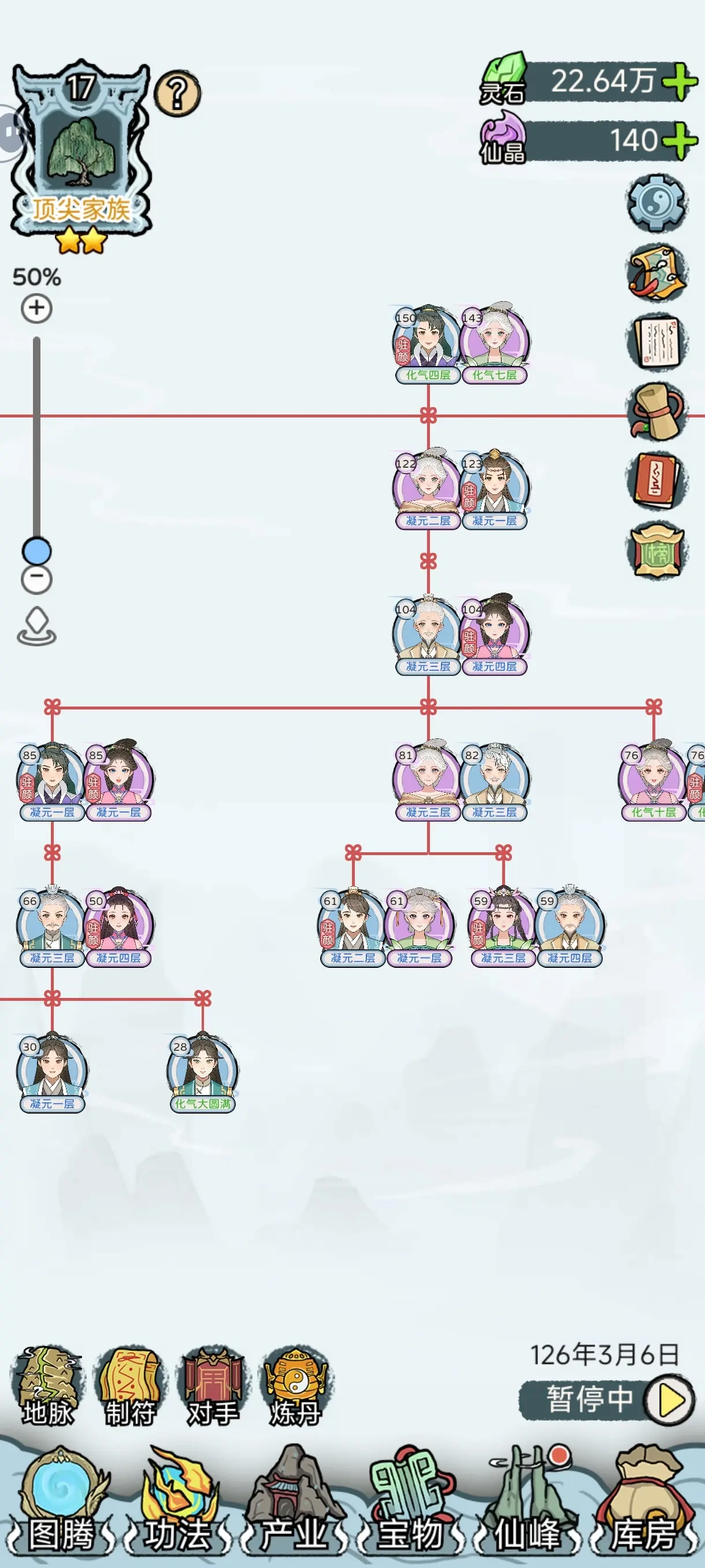3、合理分配家族的修炼资源,有天赋的就多给点吧。