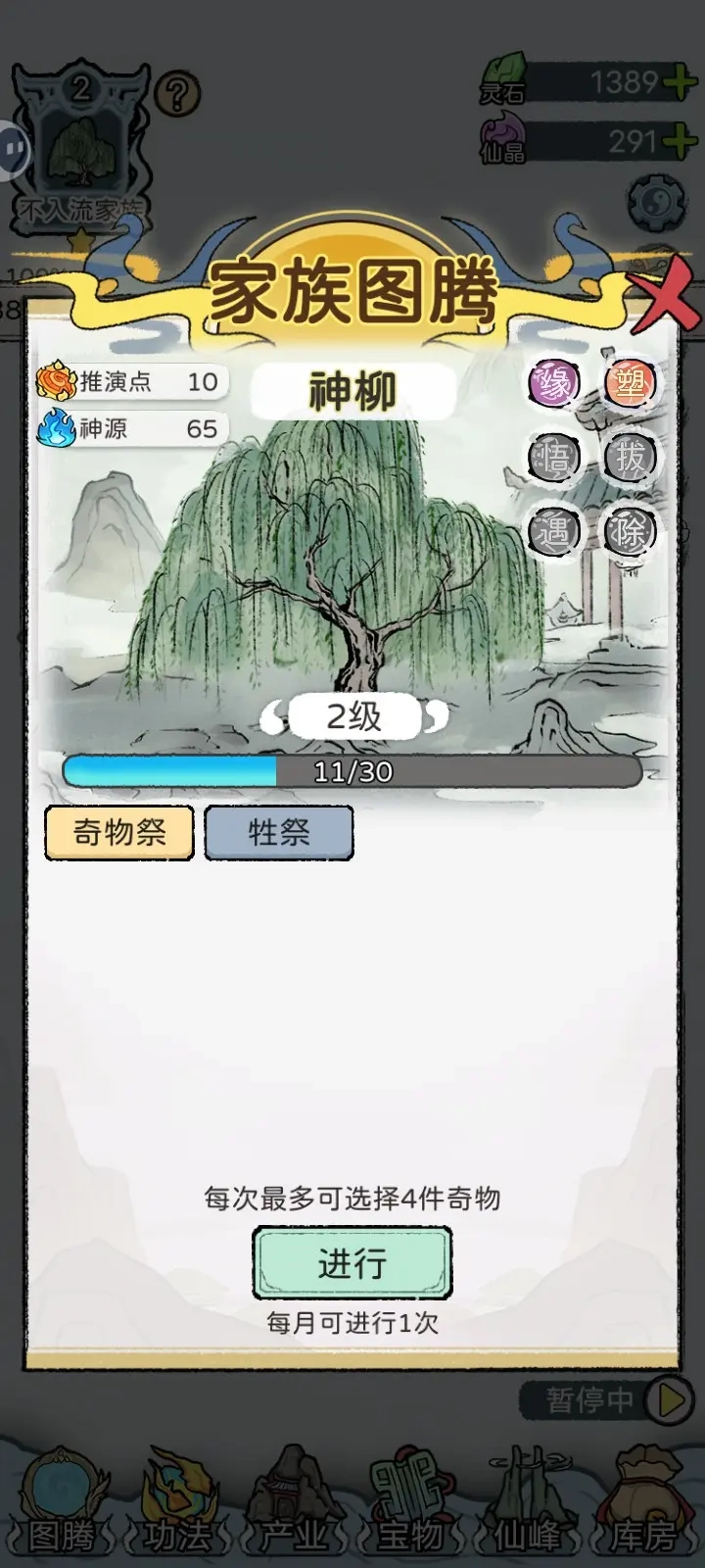3、重点:培养下一代只需要选择高的一脉给他培养天资,3岁6岁10岁都可以提升的事件(拉满选择最好的提升天资)还有其他提升天资的选项,族人不多就可以都选择,人多就培养天资一脉。留仙晶,事件60出头一次。