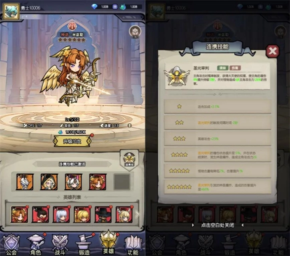 英雄羁绊和连携技能的设计很有意思,收集不同英雄的过程也很有趣。