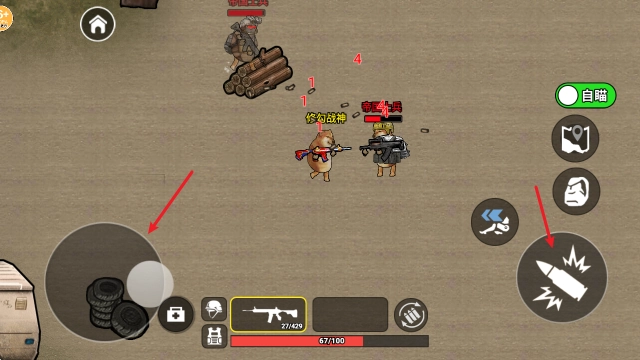 2、左侧的摇杆控制移动,遭遇敌人后即可进行射击。