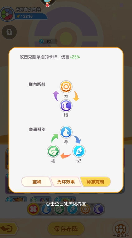 上阵同阵营的精灵能激活光环加成,要是全体精灵都属于光阵营或暗阵营,还能得到额外增益,而且光、暗阵营可以和其他元素阵营自由搭配。