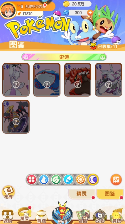 游戏中的精灵划分为海、陆、空、光、暗五大阵营。