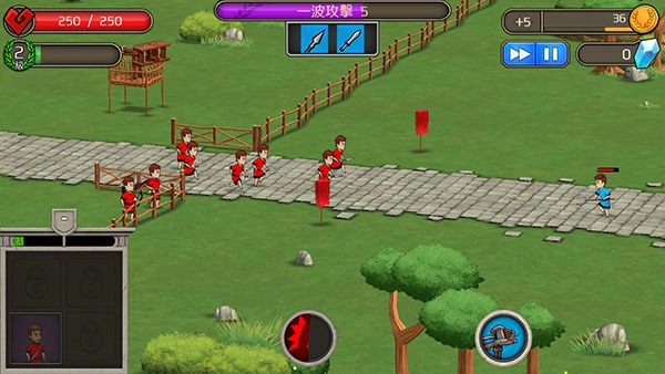 5、点击【下一波】按钮就能开始战斗,左下角可以出兵,下方还有技能按钮。