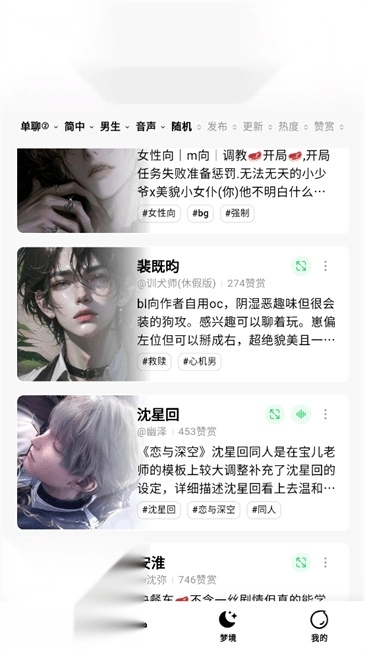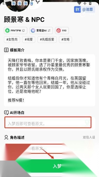 3.你可以设置ai开场白和角色描述,最后点击入梦即可。