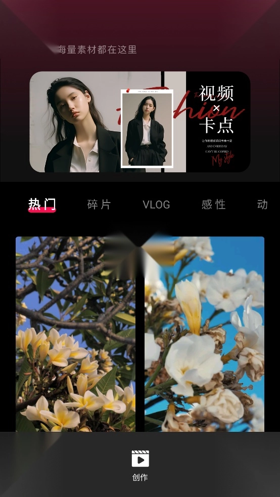 3、素材宝库,海量视频、图像、音乐和特效资源,涵盖多类创意场景,灵感触手可及。