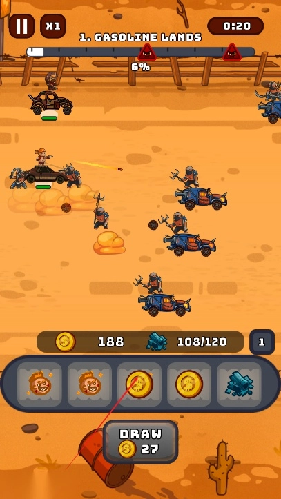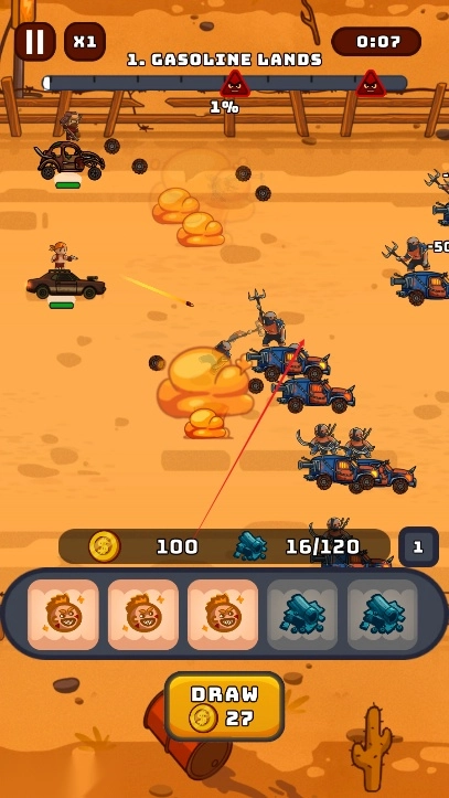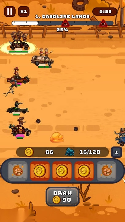 玩法融合极具冲击力:把赛车驾驶的速度感、末日题材的残酷感和合并升级的策略性巧妙融合。驾驶武装赛车冲锋时的爽快感,与合并战车部件、搭配战士技能的战术思考形成强烈反差,既满足玩家对刺激战斗的渴望,又提供深度策略空间,玩法层次丰富且充满张力。