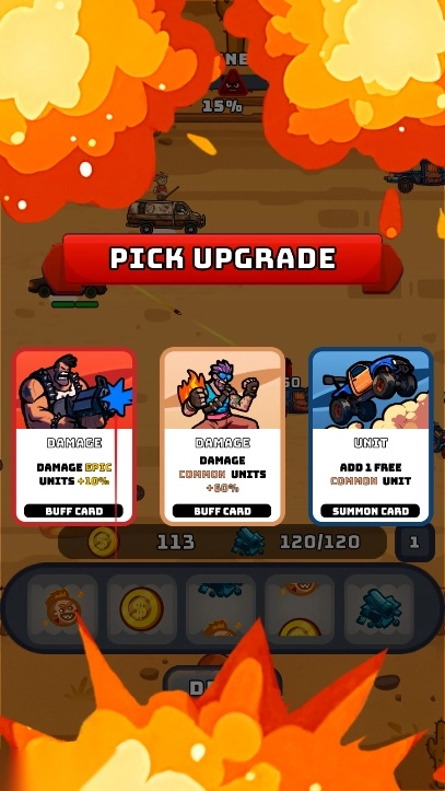 成长体系与资源联动紧密:胜利获得的资源可灵活分配给命运之轮(随机奖励)、助推器(即时战力)或帮派升级(长期成长),不同选择会导向截然不同的战斗风格。例如侧重升级帮派可解锁更强战士,专注助推器则能在单次战斗中爆发超强战力,资源分配的策略性让成长路径充满个性化。
