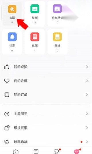 2、来到【我的】界面后,点击左上方的主题按钮