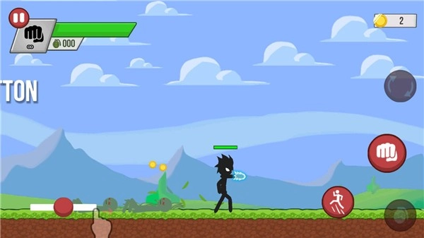 2、我们可以通过手指位置左右移动,右边按钮可进行攻击和跳跃。