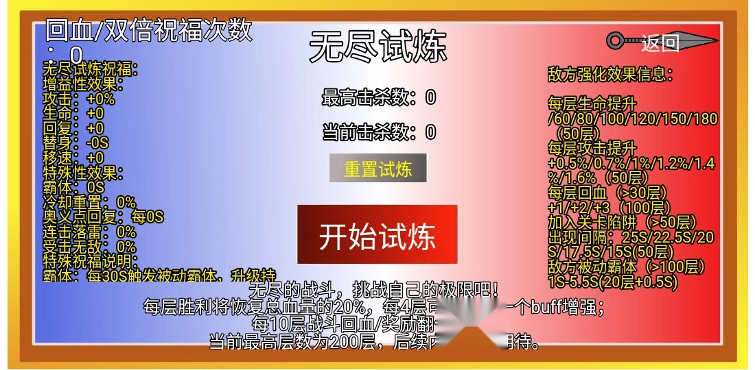 7、在无尽试炼中,胜利后可以恢复血量;点击中间的【开始试炼】即可;