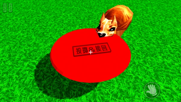 4、当看到飞盘上“投掷&接回”的提示时,要先熟悉投掷的操作方法,在和狗狗互动的过程中精准地投掷飞盘。