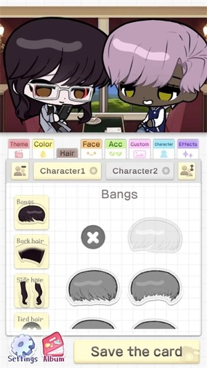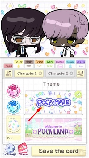 2、选定主题后,点击【character1】或【character2】,分别为两个角色更换装饰,打造个性化形象。