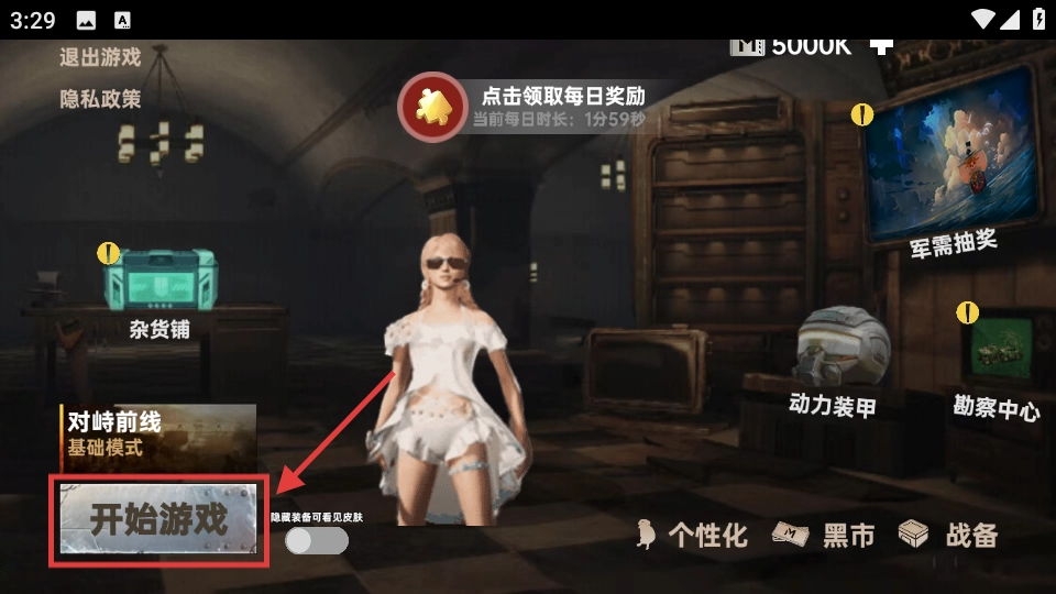 1、点击【开始游戏】按钮,进入【对峙前线-基础模式】,投身于地铁战场之中,开启紧张刺激的生存对战。