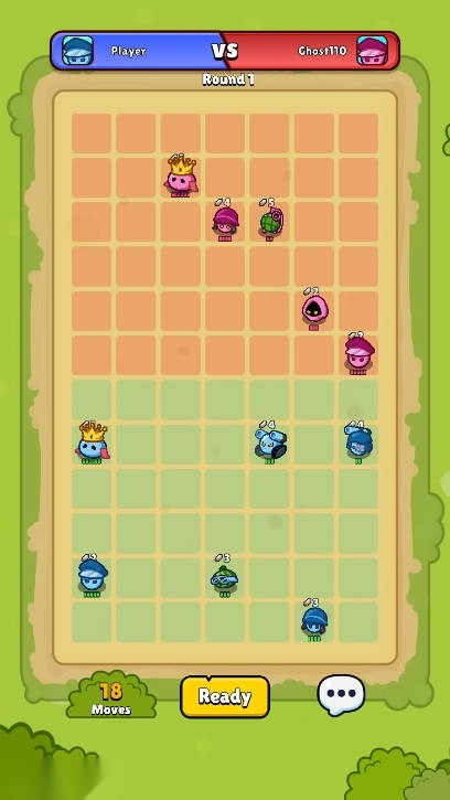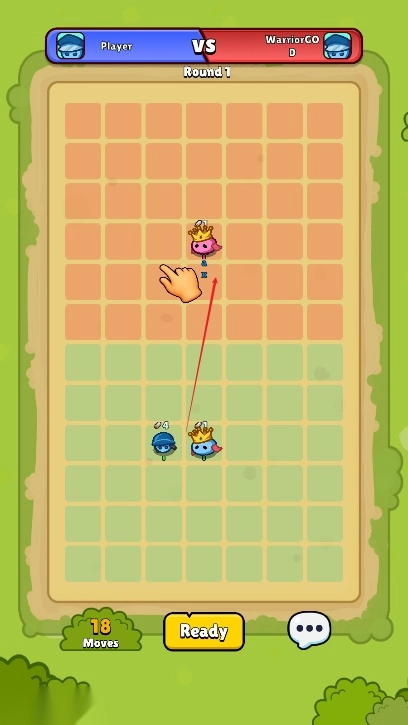 1.同步行动战术博弈玩法:作为游戏的核心机制,两名玩家在每个回合都要同时制定并提交行动方案。玩家需要操控国王和不同兵种单位,在网格里规划移动路线、确定攻击对象或释放技能,提交后双方的行动会同步进行。这种玩法对预判能力要求极高,比如当预判对手会派遣近战单位突袭国王时,既可以提前布置盾兵进行拦截,也能调动骑兵绕到后方牵制,每一次决策都得兼顾进攻与防守的平衡。