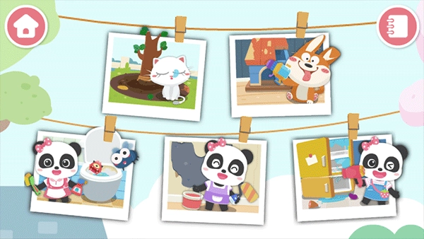 作为宝宝巴士早教系列游戏之一,宝宝家园清洁游戏也延续了经典的卡通画风和趣味角色动画,生动形象的游戏画面为宝宝的童年带去更多欢乐时光。另外,游戏内还有家长中心,家长可以在里面设置好适合宝宝年龄段的课程、时间控制、护眼设置、产品设置,利用这些设置,可以帮助宝宝更好的完成勤劳的好习惯!亲爱的宝妈们,赶快和孩子们一起体验吧!