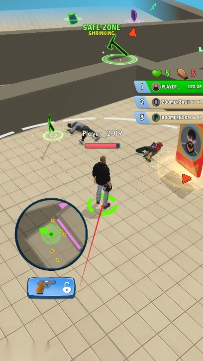 屋顶逃生(com.lilyx.apexarena)是一款集跑酷、射击与生存元素于一体的快节奏多人对战游戏。玩家需在不断收缩的屋顶竞技场里,与其余9名对手展开紧张刺激的较量。操作简便、反应迅速加上精准的位置把控,是赢得胜利的核心要素。