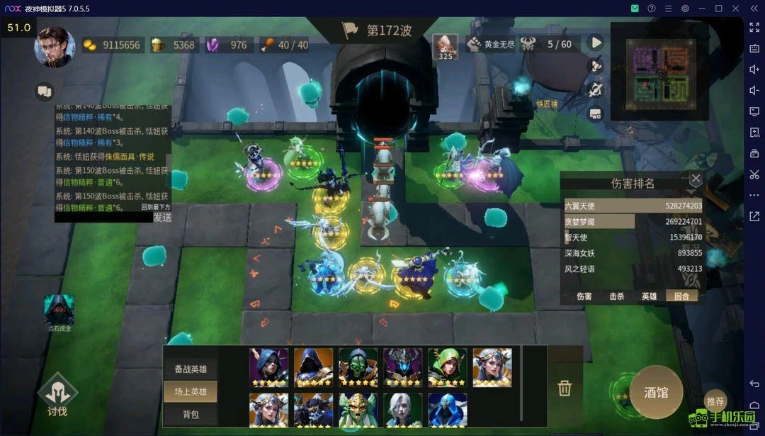 站位:从左到右,力天使、绿弓、玛门、六翼、布道、六翼、智天使、女妖、吸血鬼、符文、深渊之弓