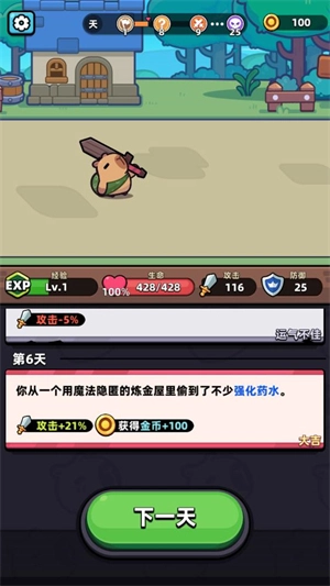 1、可爱的风格会给你带来新的游玩体验,随机的冒险非常依赖玩家的运气。
