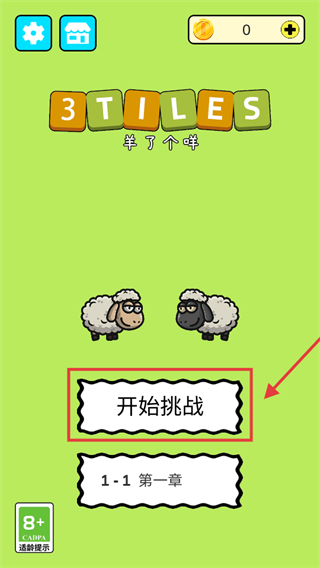 1、点击【开始挑战】按钮进入游戏的【1-1】第一章关卡,开启三消闯关之旅,感受休闲益智的乐趣。