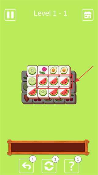 2在游戏关卡里,你需要找出带有相同图案的方块,像西瓜样式的那种,只要点击三个图案完全一样的方块,它们就会消失,这样就能让游戏继续往下进行了。