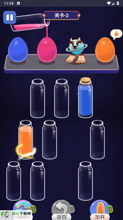 在游戏过程里,当遇到难度较大的关卡时,玩家能够借助特定物品来辅助通关。比如有一种道具能让试管里的两种液体相互调换,还有一种道具可以把某个试管里的液体全部移除,从而为后续操作腾出更多可用空间。