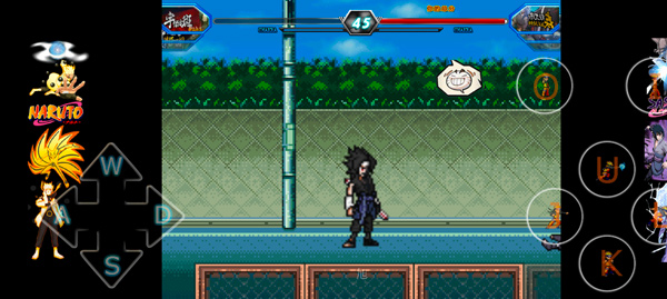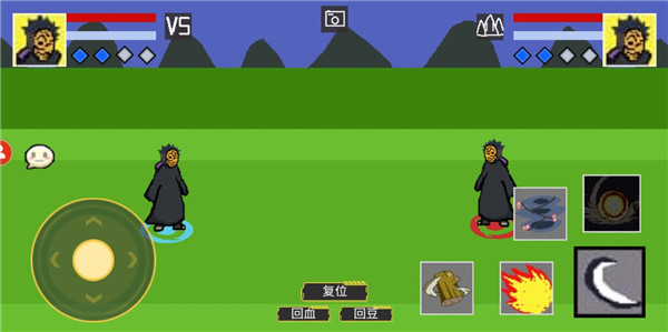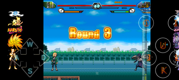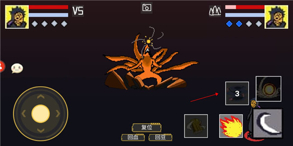 6、稍作等待加载完成后,就能正式进入游戏了。游戏界面左侧是移动控制键,右侧则分布着攻击键、技能键、闪避键、跳跃键,还有用于释放忍术卷轴和召唤通灵兽的按键。