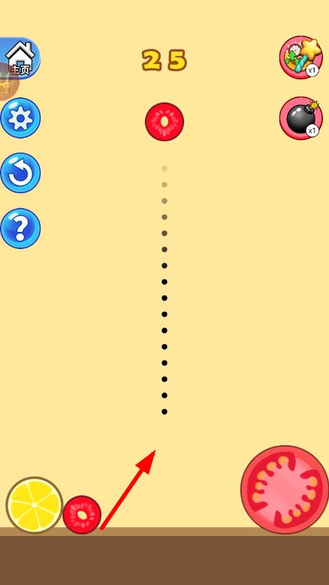 进入游戏后,在以夏日水果为主题的合成界面里,留意上方掉落的水果种类,通过左右滑动屏幕来调整水果的下落位置,使相同的小水果(比如樱桃和樱桃)在底部碰撞并融合。