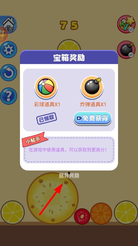 1、合成布局技巧:尽量将相同水果集中摆放,底部预留一列空位作为调整空间,避免将大水果堆在边缘防止小水果无处合并导致空间堵塞阻碍通关。