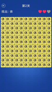 汉字找不同 这是一款轻松的休闲益智游戏。在这个充满汉字的世界里,游戏中设置了大量形似的汉字,玩家需要仔细观察并找出其中唯一不同的那一个,以此完成关卡挑战。每一关玩家都拥有三次选择机会,整体游戏流程十分简单,闲暇时玩上一局,正好可以用来打发时间。感兴趣的玩家不妨前往3dm站体验一番。