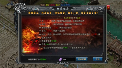 3.击杀狂暴之力的玩家可以获得100灵符奖励,被击败玩家狂暴之力状态消失,被怪物击杀则不会。4.下线狂暴之力状态不会消失