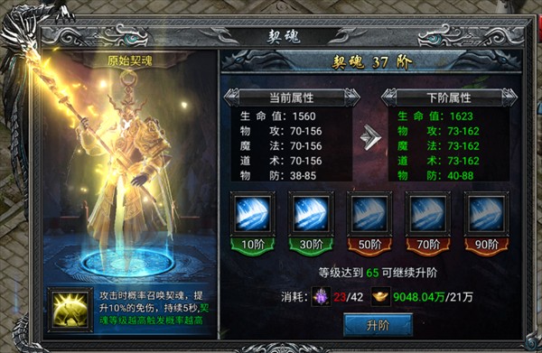 3、契魂系统:契魂提供七种属性,其中生命属性尤为珍贵。消耗相应的契魂之灵可提升契魂等级,并随之增强属性。