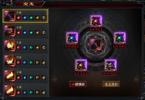 1、在游戏里,玩家能通过主界面的宝玉图标进入宝玉界面进行镶嵌操作。宝玉一共有5种类型,同时还划分为7个品级,具体为下品、中品、上品、绝品、后天、先天和珍稀。通常来说,宝玉的品级越高,它所带来的属性加成提升幅度就越大。而高级别的宝玉需要通过消耗低品级的宝玉来合成,低品级的宝玉则可以通过打怪以及参与活动的方式获取。