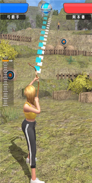 1、玩家能够随机匹配对手,双方可以展开竞技较量,比拼射箭水平的高低,实力更优者将获得最终胜利。
