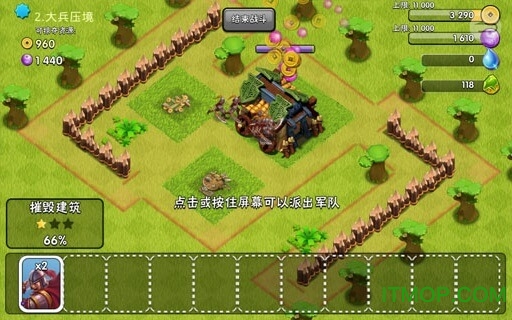 整体操作界面简洁、清爽且富有质感,战斗时的视野十分开阔,核心操作主要围绕出兵进攻时的位置挑选与兵力部署展开。界面上有几个关键信息点值得留意:经验等级、奖杯数量以及议事殿等级——议事殿等级直接关系到能否解锁更多或更高级别的资源与武器,奖杯数则可能左右你搜索到的对手的实力水平。综合来看,这是一款相当出色的手机网络游戏。