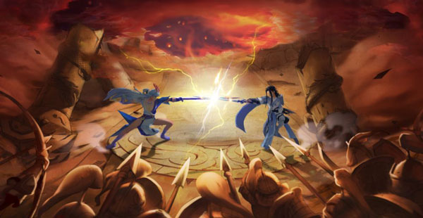 3、培育法宝,施放大威力技能,幻化飞行自在穿梭天地之间,收集稀有法宝与同道好友展开热血对战。