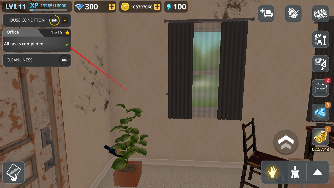 4、右下角是清洁工具区,方便你随时清理房间内的污垢。