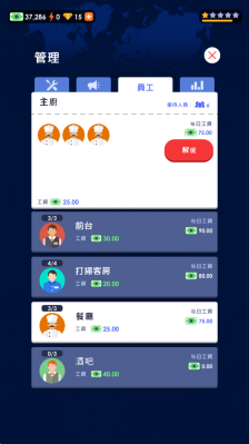 4、点击右下角的建设按钮,在这个界面中我们能够雇佣员工,以此提升运营效率。