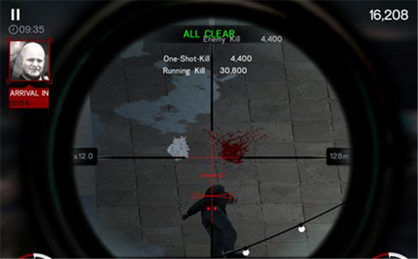 过关技巧:这一关需要在保安打电话警告他人的瞬间将其爆头击杀。比较快捷的方法是先射击保安的腿部,这样他们会迅速掏出电话,此时再瞄准头部将其击杀就可以了。