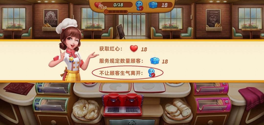 3、爱心:收集顾客爱心。需要在顾客心情值跌到爱心以下前完成顾客的全部需求。