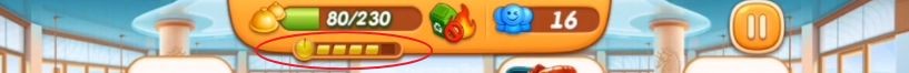 连击的每两次上菜时间间隔约两秒,可以通过关卡界面上方的圆盘倒数和连击计算条了解当前连击的情况(如上图红圈内)。最佳方案就是凑齐5个一起上,5个5个地上菜。