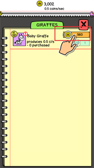 2想加快金币获取速度的话,可以考虑在商店用560枚金币兑换一只长颈鹿宝宝,这样就能提高单位时间内的金币产出效率了。
