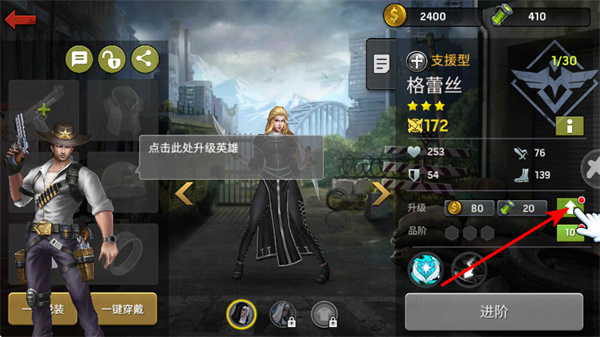 3、点击升级按钮可提升英雄等级,这是增强队伍战力的关键操作,升级时需要关注资源的消耗和等级提升后的属性变化。