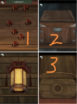 11、回到院子,点燃石灯,按照灯光亮起的顺序在正屋输入对应密码,获得灯笼。