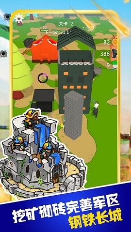 3、招募各类不同的部队,升级你的盔甲与武器装备,开采石材并将其兑换为金币。