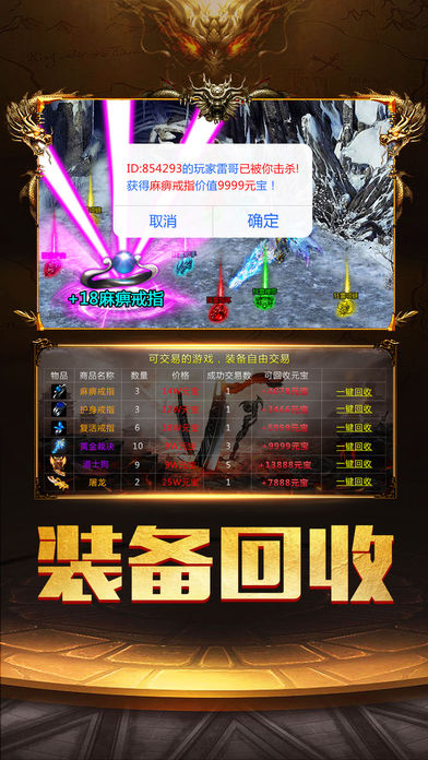 2、霸刀战神无特戒,爆元宝,非R齐心战天下;