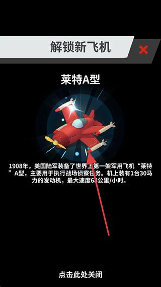 3、完成合成后,解锁“莱特A型”,可了解该机型的历史背景——1908年被美军列装,主要执行侦察任务。点击关闭相关界面后,可继续进行合成操作或参与战斗,以进一步拓展机队规模。