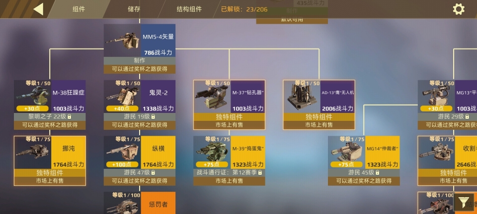 从理论层面来看,机枪类武器其实是萌新工程师的最优选择——这类武器作战范围适中,而且相对不需要特意进行观测瞄准。在《创世战车》移动版里,机枪能依据射击模式大致划分为点射机枪、速射机枪与转轮机枪;另外,按照射击角度(以及其他相关属性),还可以将其分为标准机枪和前置机枪。