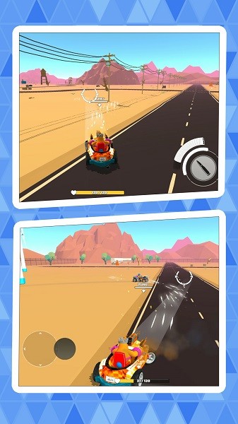 1、在刺激的飙车挑战中尽情开启冒险之旅,广阔的沙漠战场任你自由探索;