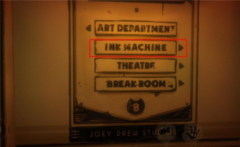 第一章的主题是“移动的画像”。在这一章节里,玩家得进入标有“INK MACHINE”字样的油印机房间,触发启动油印机的任务。另外,还要找到主电力机房,有意思的是,启动电力得收集各种特殊道具,像扳手、齿轮、书籍、音乐盒、唱片、墨水瓶和班迪娃娃。但这些道具的位置是随机的,只要你仔细搜寻这一章节的每一处,总能把它们找齐。