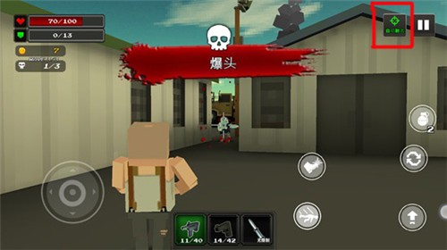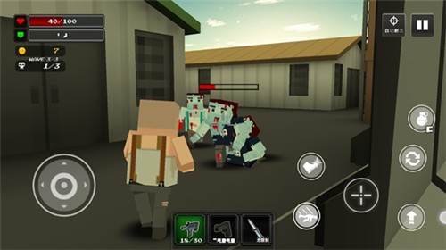 进入关卡后,角色会默认出现在一座小镇里,随着游戏推进僵尸会陆续出现,玩家可以通过屏幕左下方的摇杆来控制角色移动。